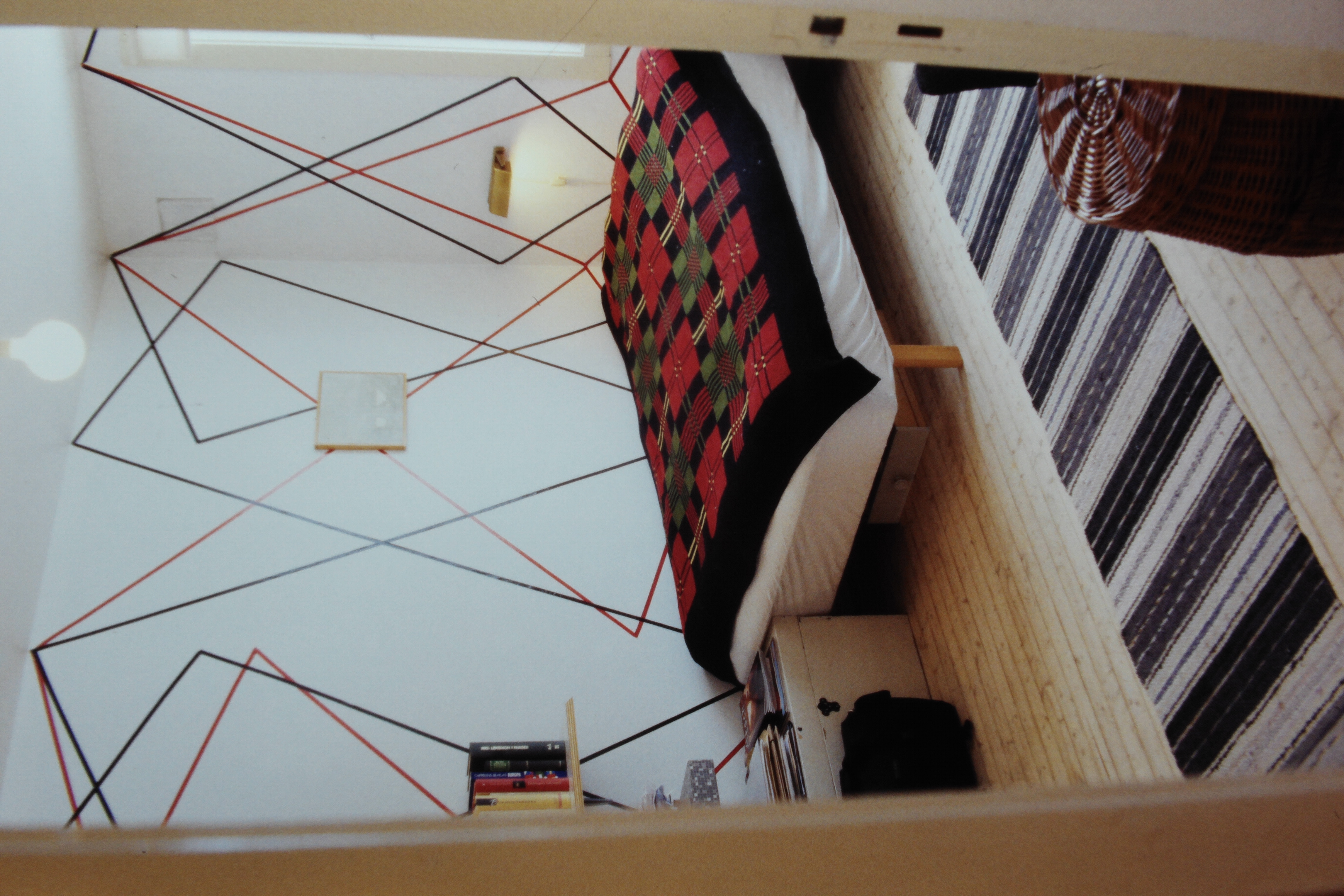 Foto: Hjemme/Borte, Per Formo, tape-maleri, Galleri m. balkong, Trondheim, 1995